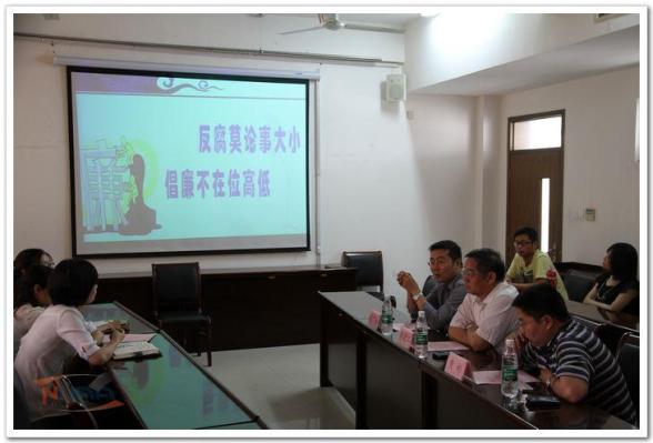 本次活动分别以视频、舞台剧、PPT等形式解读了“80后副局长受贿千万被判无期”、“女大学生村官贪污拆迁款80余万引热议”、“广西女大学生村官贪污51万豪赌判刑12年”等典型案例,引发大家对“高素质人才如何在走上行政岗位后保持廉洁”的讨论。楚广兴指出,腐败源于意识淡薄,大家要时时警惕,并分别从“政治前途账、家庭亲情账、财务账和心理账”四个方面给大家做详细讲解,呼吁各位党员同志切实做到自律。
