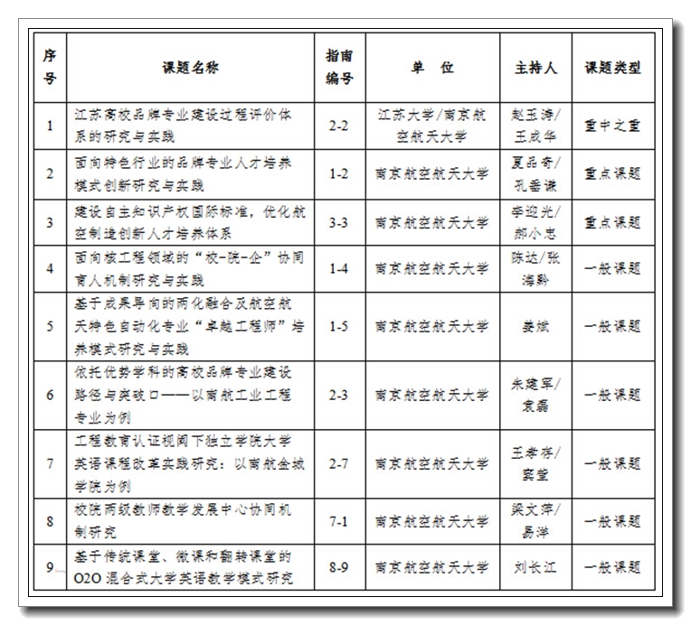 近日,江苏省教育厅公布了2015年省高等教育教改研究立项课题评选结果,我校有9项课题获得立项,其中重中之重课题1项,重点课题2项,一般课题6项。此次评选中,全省共确定2015年省高等教育教改研究立项课题639项(重中之重课题19项,重点课题112项,一般课题508项)。 我校一直重视教育教学改革工作。在此申报中,学校精心组织,广大教师踊跃申报,各学院积极推荐,使得一批高水平教育教改课题脱颖而出。此次优异成绩的取得,充分显示了我校近年来在人才培养改革、专业建设、师资队伍建设以及教学管理等方面的投入已取得了明显成效,也为“十三五”期间进一步提升教育教学水平、促进优秀教学成果的形成打下了良好基础。 |
