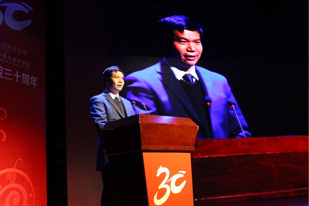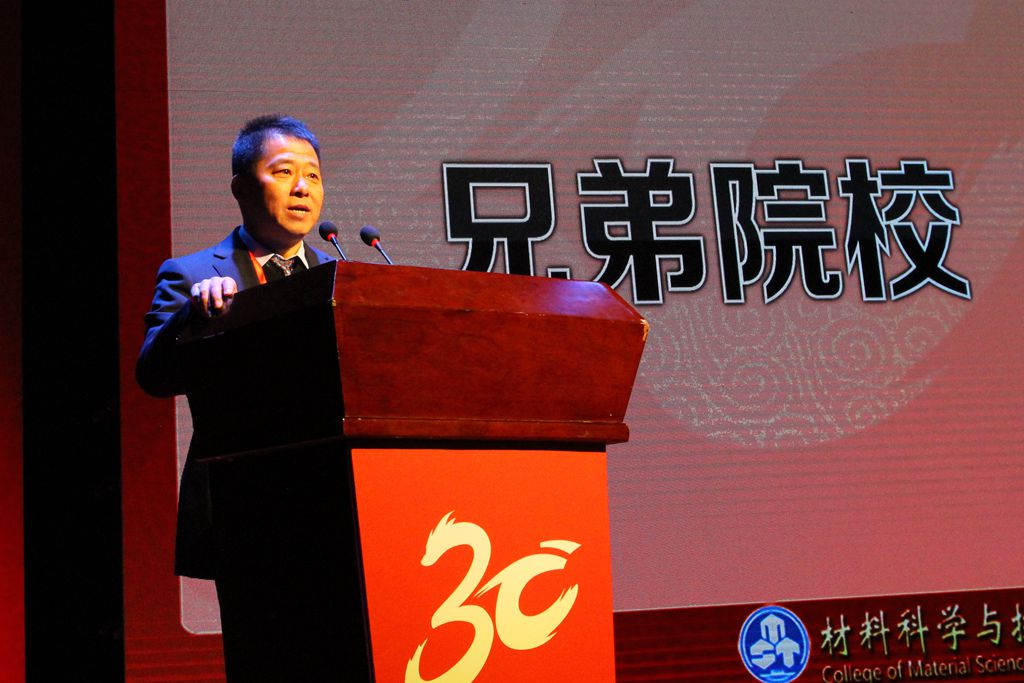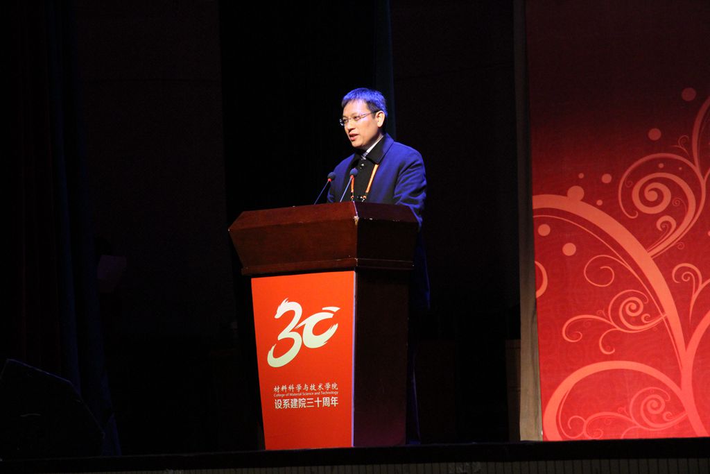 南京大学陈延峰教授代表兄弟院校发表了讲话,向材料学院三十年的成长之路表示肯定,由衷赞叹材料人“大气、奉献、求实、创新”的学院精神,希望加强与南航材料学院在人才培养、科学研究等方面的合作,共同促进合作共赢。