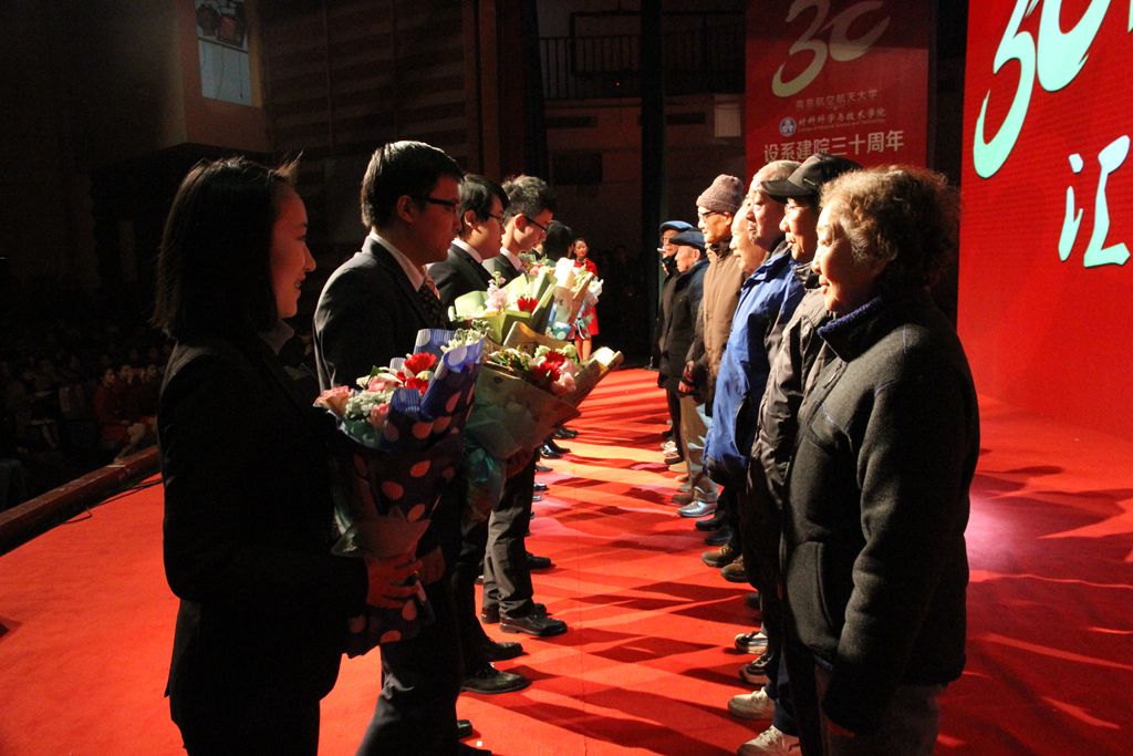 “知史而明今”。学院研究生以学院发展历史为题材表演了情景剧《峥嵘岁月》,讲述了三十年来老一辈材料人克服艰苦条件,献身学院建设的历史故事,再现了关键时期扭转局面、顽强拼搏的历史事实,歌颂了材料人“大气、奉献、求实、创新”的学院精神,也展现了三十年来材料学院取得的重大成就。情景剧引起了与会嘉宾的强烈共鸣和深切感动,很多人都是情不自禁、热泪盈眶地看完了全剧。为深切感谢老一辈材料人对学院建设的无私奉献,鼓励材料人要明晓历史、注重传承,优秀在校生代表向离退休老教师代表们献上了鲜花,表达深深的谢意和祝福。