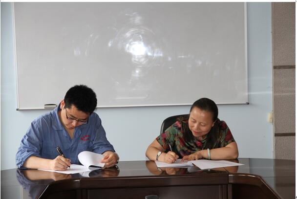 梁文萍与刘国祥分别代表双方签订了《材料学院与南京斯贝尔复合材料有限责任公司共建学生实习实践基地协议》。