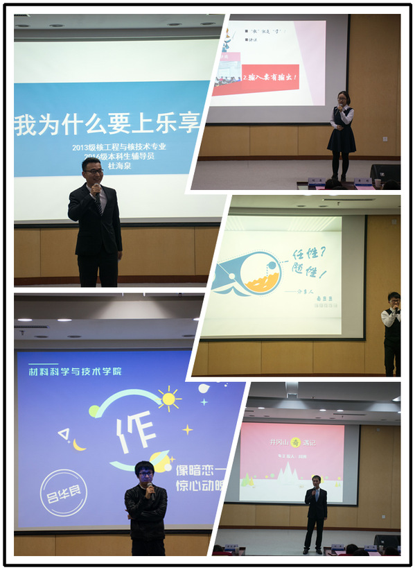 此外,艺术与科研完美结合的“非典型”博士生吕华良告诉大家,在追梦的路上,应该不忘做好每个当下应该完成的工作,要相信:今天你们为梦想做出的牺牲,明天都会以另一种更为优雅的方式回归。全国金相大赛一等奖得主杨博文、优秀宿舍代表王雨珂、“弹指一挥间”团队周洲、2014级党支部欧阳佩仪都与大家分享了成长背后的故事。