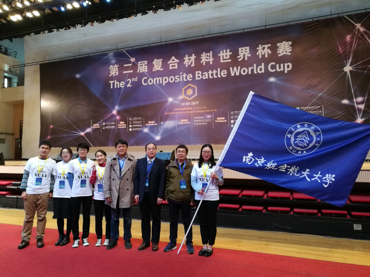 2017年11月20-24日,第二届复合材料世界杯赛开幕式在西北工业大学长安校区翱翔体育馆举行。由我校国际合作交流处组织,材料学院2016、2014级研究生以及指导老师姚正军教授、顾冬冬教授和周金堂老师组成的NUAA.VARIer参赛团队参加了比赛并获得优异成绩。