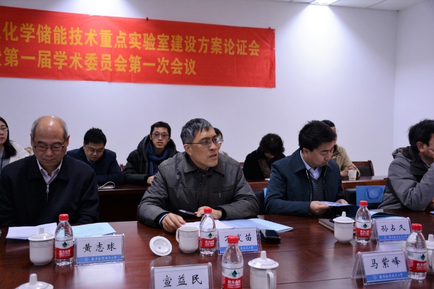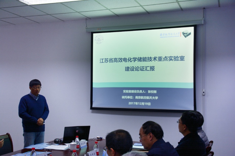 会议听取了重点实验室主任张校刚教授所作的《江苏省高效电化学储能技术重点实验室建设论证汇报》。报告详细介绍了重点实验室的建设意义定位、建设目标和任务、研究方向及研发任务、基础条件建设、人才团队与能力建设、管理体制与运行机制建设、年度工作计划及考核指标、经费投入及预算。