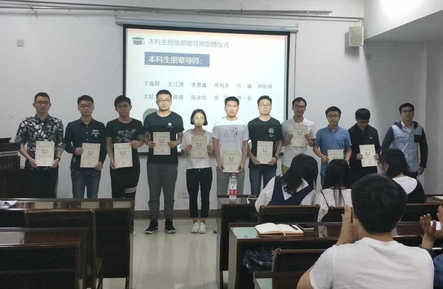 为进一步强化学风建设,帮助和引导低年级本科生更好地适应大学的学习生活,学院决定设立研究生、高年级本科生到低年级本科生班级担任朋辈导师制度。4月22日晚,学院第一届本科生班级朋辈导师聘任仪式在材料楼301会议室举行,各年级辅导员、第一届朋辈导师及2016级、2017级本科生班级学生代表参加了聘任仪式。