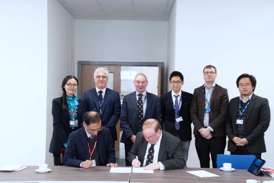 11月12日上午,南航代表团受到了切斯特大学校长蒂姆.惠勒教授一行的热情接待。惠勒教授代表切斯特大学发表了欢迎辞,随后陶杰教授介绍了南航的教学、科研及国际交流合作项目的现状和发展,双方就可能开展的国际交流项目及领域进行了广泛而热烈的讨论。在陶杰教授的鉴证下,惠勒教授签署了切斯特大学和南航先进智能材料实验室合作协议。之后,在切斯特大学石禹高级讲师和贾煜博士的带领下,陶杰教授一行参观了切斯特科技园复合材料实验室。石禹老师介绍了实验室团队正在进行的关于碳纤维材料内部探伤及多功能复合材料发展应用的科研项目内容。