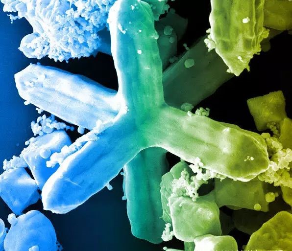 冰蓝色的微观晶体拥有着鬼斧神工般绮丽而繁复的构造,仿佛天外来物,而目睹这一纳米级的碰撞时,我们却似是站在了混沌之初的宇宙,俯瞰着造物主从神秘莫测的原始宇宙凝练出赐予未来地球的巨大冰晶。