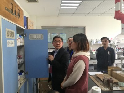 在材料学院,专家组一行在院党委书记孙占久、副院长陶海军的陪同下,首先检查了应用化学、核科学与技术实验室,向我院师生详细了解安全教育培训情况。随后,专家组又走进危险化学品中转库,检查管制药品的存储、记录台账以及危险废弃物的回收等工作。在对材料楼几个重点实验室进行检查后,专家组现场指出了存在的隐患和问题,如基础设施条件差,管制药品的双人双锁制度落实不彻底,普通药品与管控药品混放,配电箱离水池太近,气瓶离管式炉太近,烘箱边堆放太多易燃杂物等。