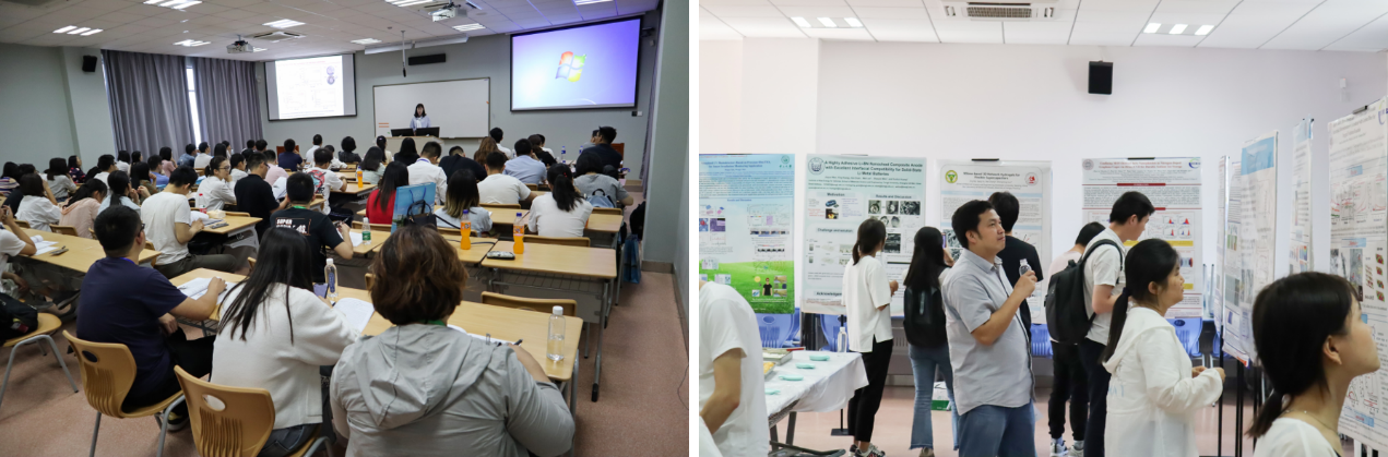开幕式及合影后,温兆银研究员、夏永姚教授、马紫峰教授、汤卫平研究员和周豪慎教授先后为大家带来了5场精彩的学术报告。带来第一场学术报告的是温兆银研究员,他和同学们分享了关于固态电解质电池的材料与界面修饰的相关研究。紧接着夏永姚教授与大家探讨了锂离子电池前沿技术与挑战。茶歇后,马紫峰教授介绍了钠离子电池关键材料与器件方面的机遇与挑战。汤卫平研究员则为同学们开拓了视野,从空间电源的现状、需求讲到未来的发展趋势。最后一场报告由周豪慎教授为大家讲授下一代电化学二次电池的开发及科学问题的研究。
