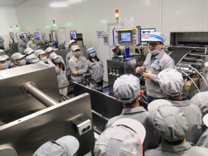 公司领导对我院师生的到来表示热烈欢迎,袁庆梦总经理介绍了公司的基本布局和主要业务,强调锂电池的生产与研发与新能源材料与器件专业联系十分紧密。随后,在袁经理的带领下,全体师生经过严格标准的除尘流程,进入了生产车间,参观了锂电池生产的核心步骤,包括混料,涂布,冷压,卷绕等。企业相关负责人就生产流程向同学们进行了详细的介绍讲解,帮助学生们将课本知识与生产实际结合起来,拓宽了学生的视野。