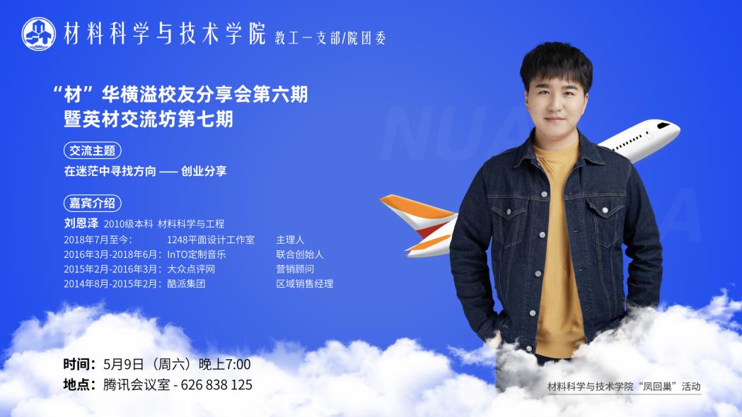 5月9日,必威BETWAY西汉姆联举办“材”华横溢校友分享会第六期暨英才交流坊第七期活动。本次分享会由教工一支部、院团委联合主办,邀请到创业成功的2010级本科生校友刘恩泽进行线上分享。学院教工一支部书记潘蕾主持了分享活动并代表学院聘请刘恩泽为校友导师。