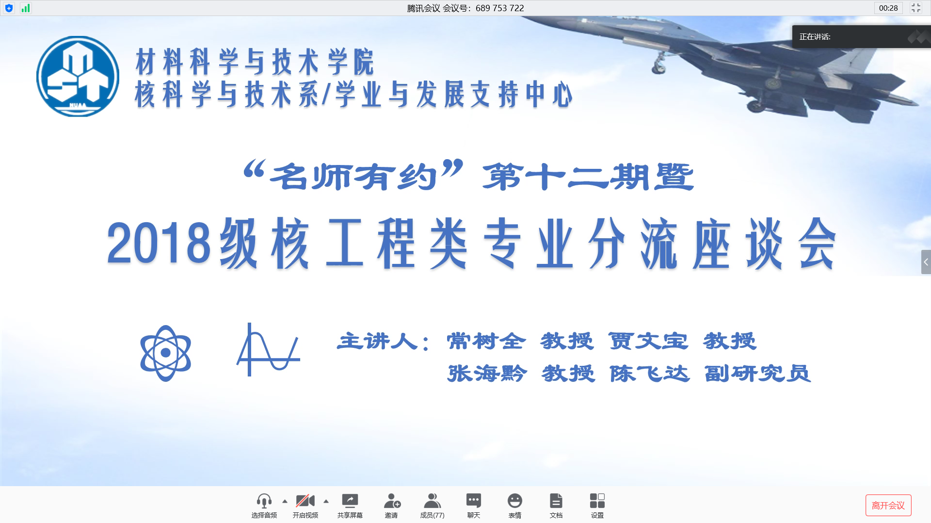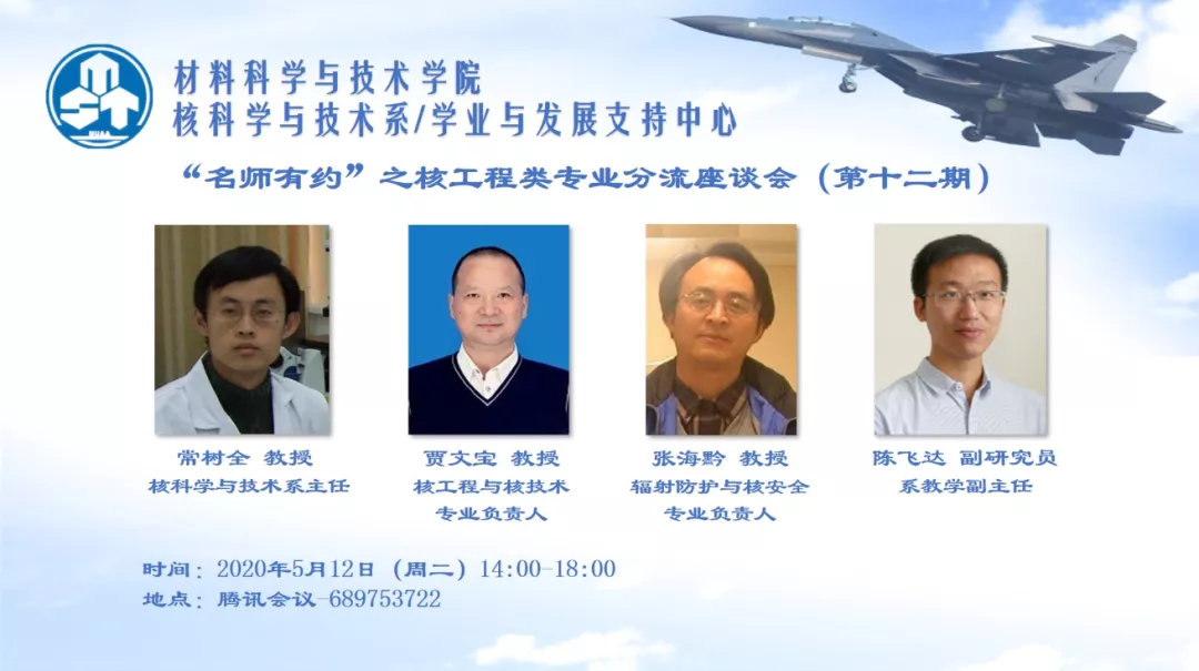 5月12日下午,必威BETWAY西汉姆联“名师有约”第十二期暨2018级核工程类专业方向座谈会通过腾讯会议平台顺利举办。会议由核科学与技术系主任常树全老师、核工程与核技术专业负责人贾文宝老师、辐射防护与核安全专业负责人张海黔老师、系教学副主任陈飞达老师主讲,2018级本科生辅导员蒋俊超及2018级核工程类专业全体本科生参与了本次座谈会。