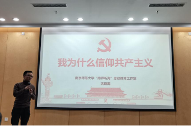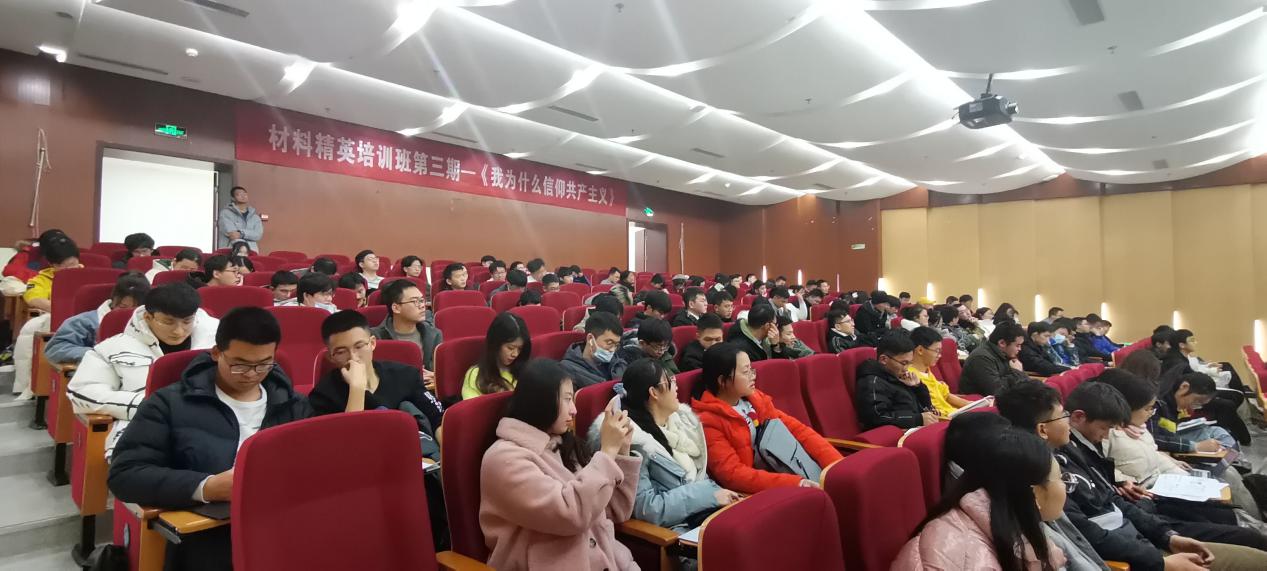 12月22日,2020-2021学年材料精英培训班第三期于图书馆报告厅正式举行,由来自南京师范大学“南师听海”思政教育工作室的沈晓海老师为我院本科生、研究生团支书及入党积极分子讲述 “我为什么信仰共产主义”。本期材精班由院团委书记徐萍主持。