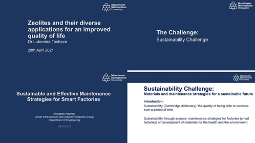 我校友好合作院校英国曼彻斯特城市大学(Manchester Metropolitan University)于4月14日-28日举办线上系列学术讲座,主题围绕工业4.0、人工智能和可持续性等关键研究领域。该系列讲座共计三场,我院受曼彻斯特城市大学科学与工程学部邀请参加Alhussein Albarbar教授《智能工厂的可持续和有效维护策略》及Lubomira Tosheva-Jivkova博士《沸石及其在改善生活质量中的各种应用》的专题分享。