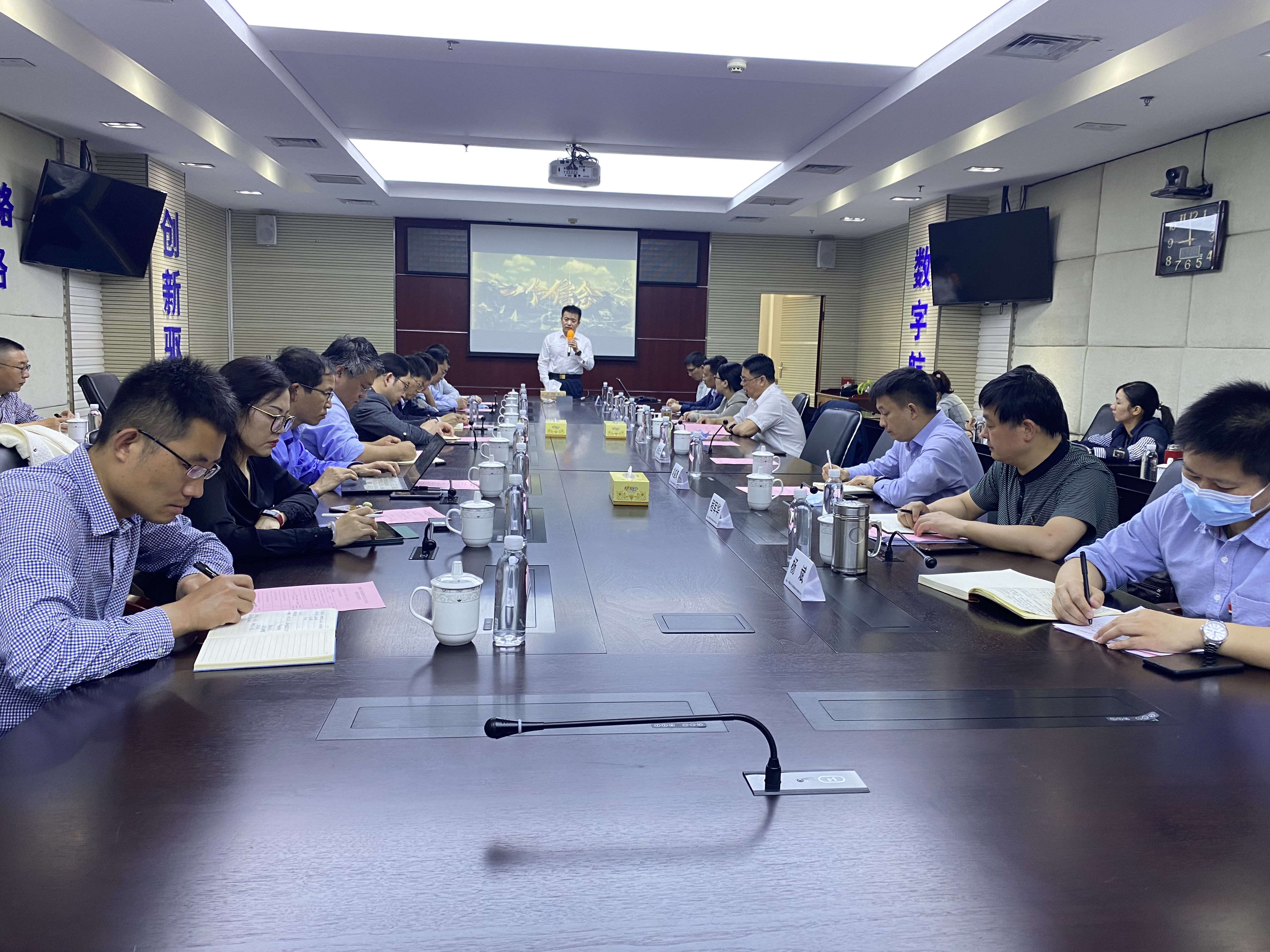张校刚就学院“十四五”发展规划、高层次人才引培、科学研究、高质量人才培养、国家级成果及平台建设等工作情况进行介绍,他表示,随着两位青年教师的挂职上岗,学院与湖南航天进入了多维合作的新阶段,今后将在联合实验室建设的基础上,继续在研究生联合培养、博士后工作站建设、国家级成果申报等方面持续深入对接,不断推进合作共赢。