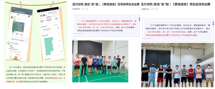 图6 师生运动打卡、羽毛球赛、篮球赛