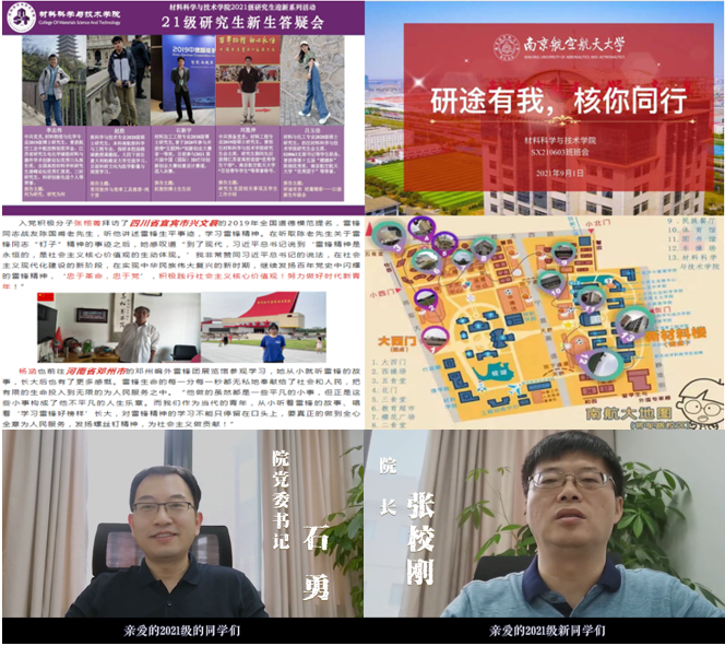 在“延期开学”的通知下,虽然新生们暂时不能来到校园,但学院对大家的关怀却跨越了漫长的距离。学院组织开展了“六个一”迎新活动:一、拍摄一段迎新视频,院领导们向新生致以最诚挚的欢迎与祝福;二、绘制一张新生大数据图,揭秘了新成员的地域、生日、姓氏等的有趣信息;三、举行一次线上班会,自我介绍、才艺表演、班委竞选……新同学们在云端相见,其乐融融、相谈甚欢;四、召开一次经验交流会,五位科研成绩斐然的师兄师姐为新生传授“怎样过好研究生生活”的秘诀;五、直播一场实验室参观活动,新生们隔着手机屏幕探访了激光焊接和精准再制造实验室、光催化实验室、分析测试中心等重点实验室,为未来的科研生活打下基础;六、开展一次党史学习教育,新生入党积极分子们在国庆之际,前往家乡的红色教育基地、革命烈士故居等地探寻红色基因,带着国旗看山河,挖掘照片背后的党史故事,进一步坚定理想信念。
