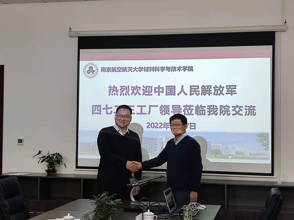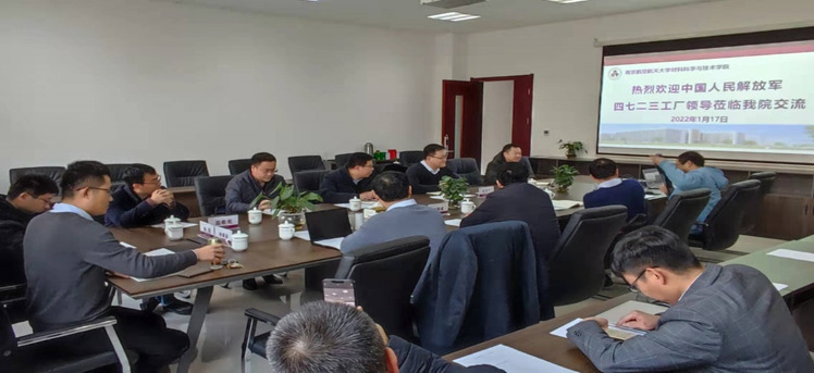 2022年1月17日上午,中国人民解放军第四七二三工厂厂长张旭东、总工程师王胜礼、纪委书记兼工会主席杨志民、人力资源处副处长翟少鹏一行来我院进行产学研合作对接洽谈。学院院长张校刚、副院长刘周成、院长助理占小红、能源与动力学院高希光教授、材料加工工程系主任郭训忠、材料科学系主任杨亮等参加了对接洽谈会。会议由占小红主持。