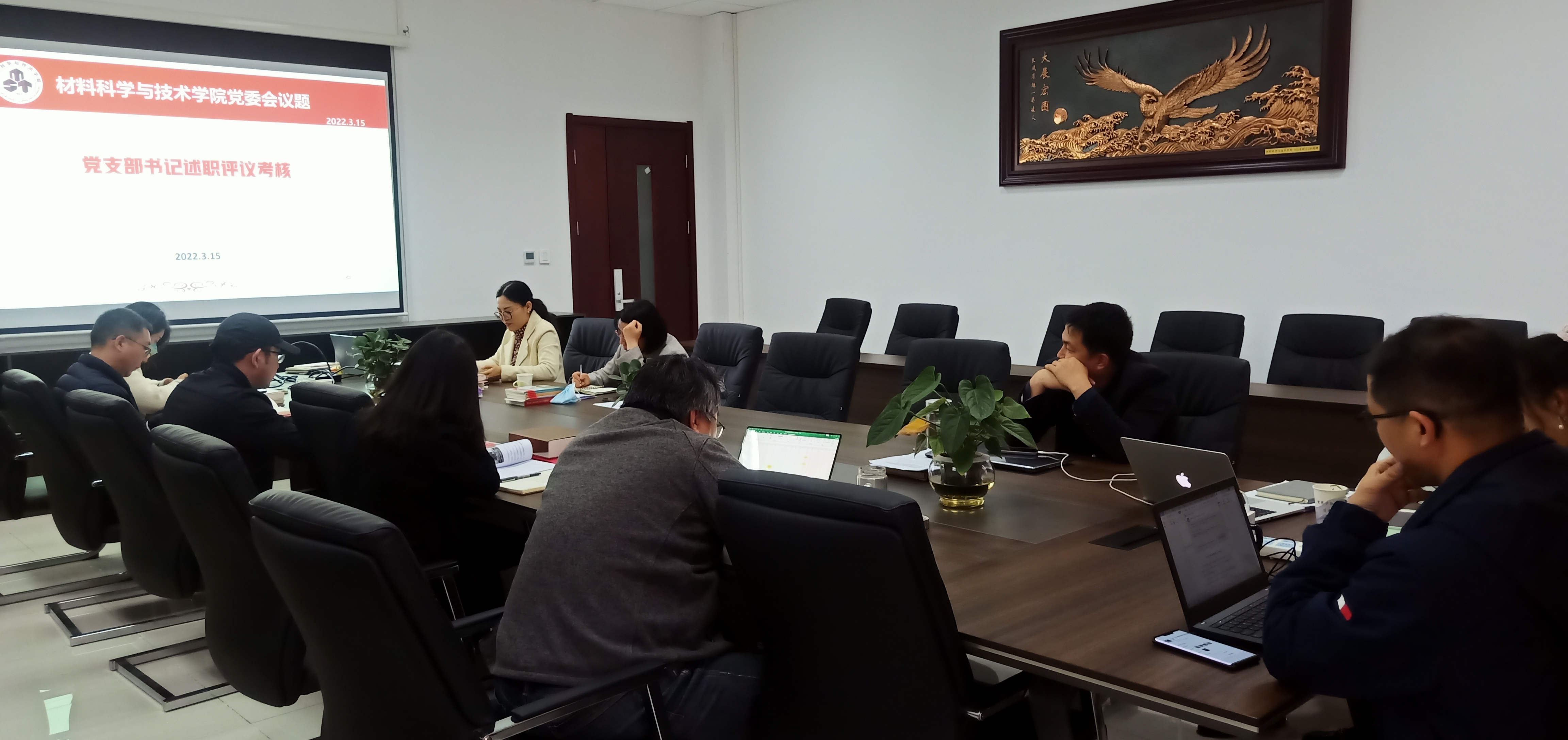 3月15日,学院召开专题党委会,学院党委书记石勇主持,开展教工党支部书记述职评议,汇报结束,党委委员对学院党支部书记抓基层党建工作进行了现场测评。石勇肯定了各支部的党建工作,并对支部书记的述职进行了点评,指出了存在的问题和改进的方向。他指出,各支部在过去的一年里,多形式开展党史学习教育,聚焦“为群众办实事”;在困难和问题面前,牢记使命,勇于担当。他提出,本学期学院将实施党支部书记例会制度,将党建工作和各系部发展紧密结合,不断提升党支部书记业务能力和政治素养,着力提升支部建设标准化、规范化、信息化水平,充分发挥支部的战斗堡垒作用和党员的先锋模范作用,为学院事业发展提供强大组织保证和政治保证。