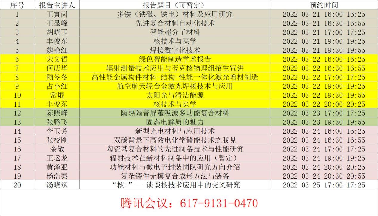为展示我院教师在人才培养、科学研究方面的优异成绩,吸引报考我院各专业的考研生,帮助学生多角度、全方位了解学院情况,必威BETWAY西汉姆联自3月21日至25日特举办 2022“材华讲坛”春季学术周暨研究生招生宣传活动。