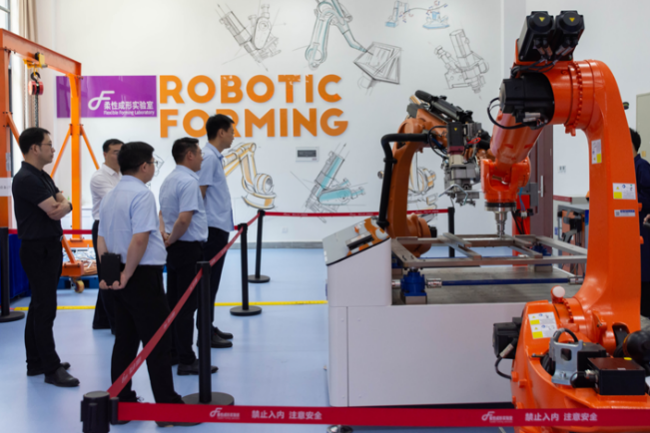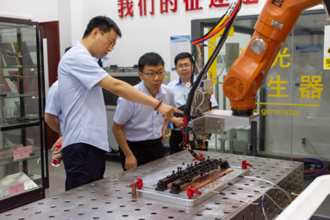 开沃新能源汽车集团一行首先参观了我院的柔性成形与装备实验室、高效电化学储能实验室、激光焊接与精准再制造实验室以及金属构件激光增材制造实验室,并与各实验室教师就新能源汽车领域的新材料研发与成形制造技术应用进行了深入探讨与交流。