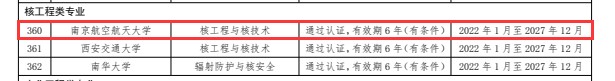 近日,中国工程教育专业认证协会正式公布了2021年工程教育专业认证结论,我院核工程与核技术专业顺利通过本次认证,有效期为6年(2022年1月至2027年12月)。这是继材料科学与工程之后,学院第二个通过认证的专业。