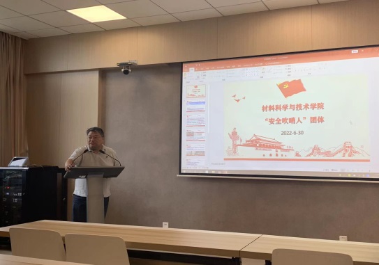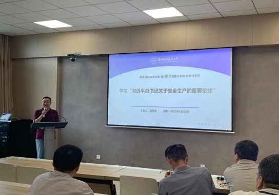 2022年6月30日,材料科学系教工党支部联合研究生9支部开展了“牢记安全使命,保障实验安全!”的主题党日活动,学院副院长汤晓斌、材料科学系非党员教工受邀参加,活动由系教工党支部书记刘劲松主持。