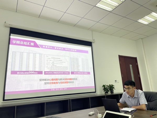 各年级辅导员结合辅导员工作规划范、KPI要求对学期工作进行了总结。大四年级辅导员蒋俊超用“胡萝卜+大棒”分享了毕业就业工作,研一辅导员邱禄芸借用《职场动物进化手册》中“垃圾工作的十大特点”对辅导员的工作进行了剖析,引起了大家的深刻思考。