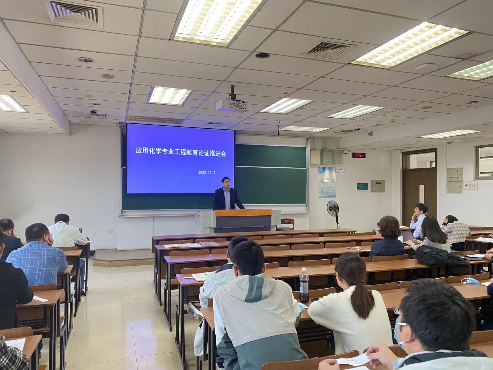 系主任常焜首先代表应用化学系对学院领导的到来表示热烈欢迎,简要介绍了目前应用化学专业在发展过程中遇到的问题,并分析了工程教育专业认证对应用化学专业建设的重要意义。