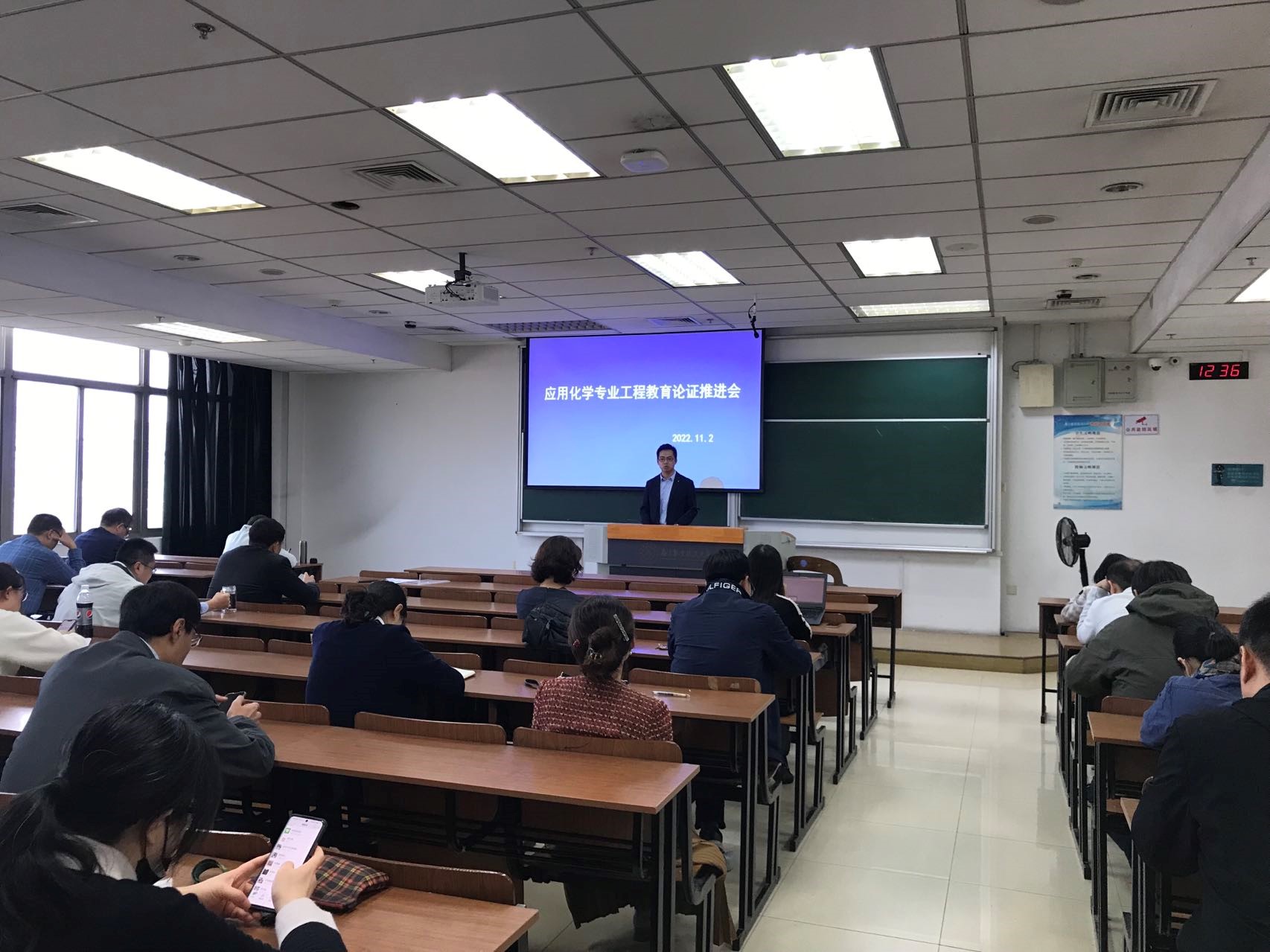 2022年11月2日,应用化学系在将军路校区10404教室召开工程教育专业认证推进会。必威BETWAY西汉姆联院长张校刚、副院长陶海军、应用化学系全体教师参加会议。