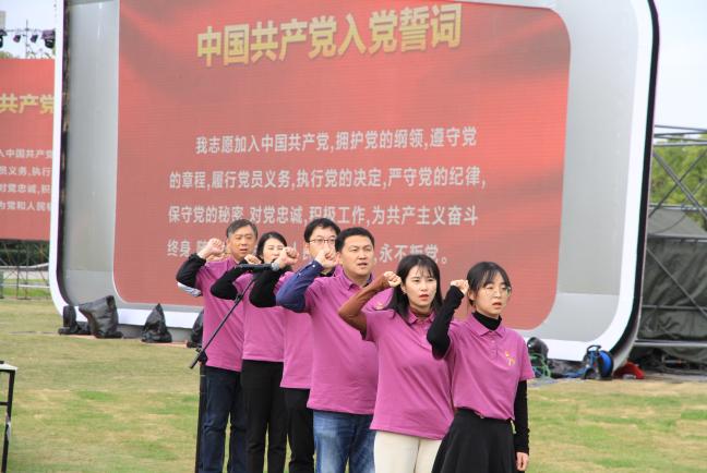 在学院党员代表的带领下,全体党员重温入党誓词,铿锵有力的宣誓声响彻整个会场,“御风园”里的国之重器见证着材料学院全体师生党员的郑重承诺。