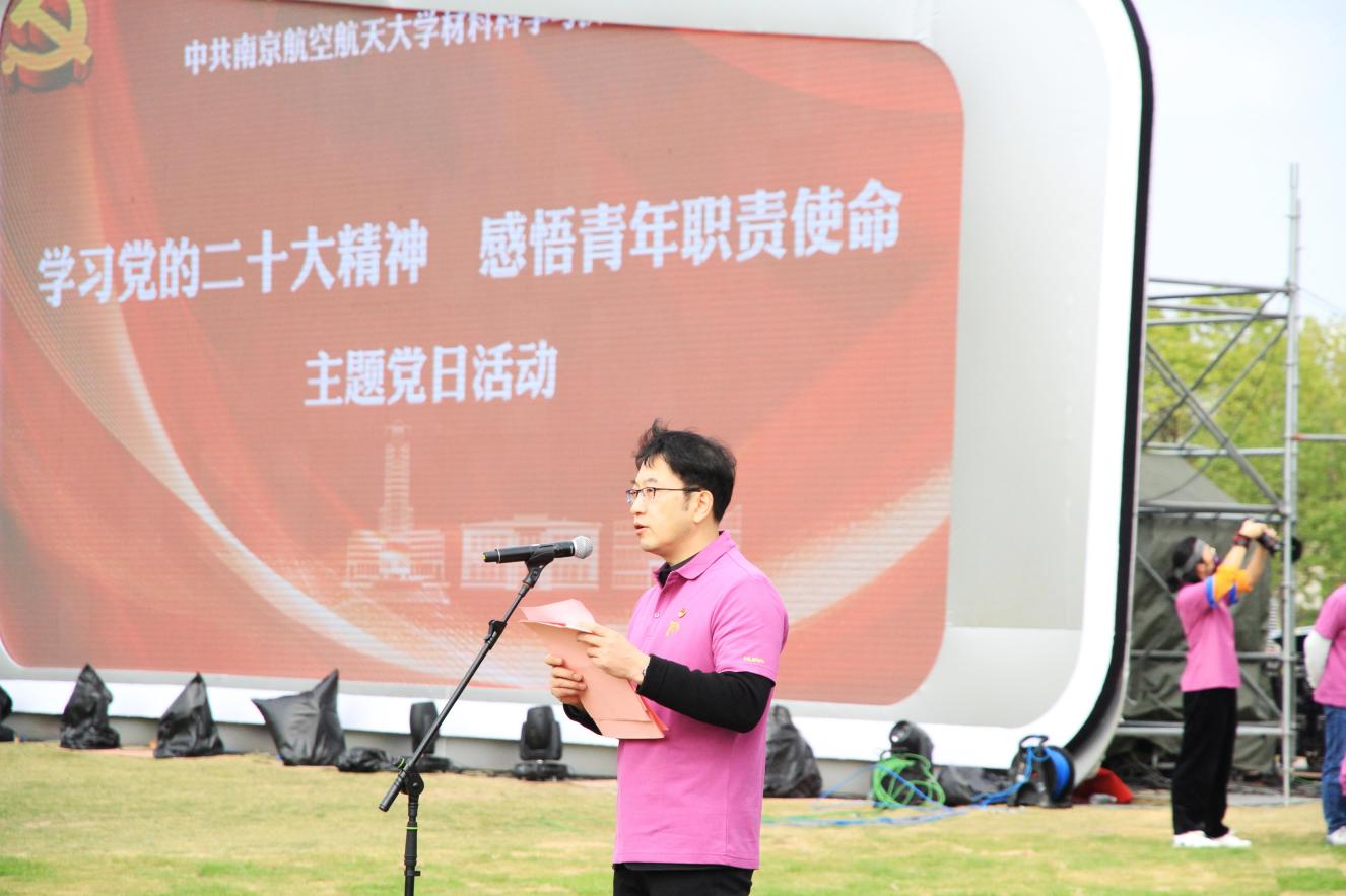 首先,学院党委书记石勇传达了学校党委关于学习贯彻党的二十大精神的部署要求,他指出学习贯彻党的二十大精神是学院当前和今后一个时期首要的政治任务,全院师生党员要把学习贯彻党的二十大精神同本职本责工作紧密结合,以强烈的历史主动精神,担当新使命,展现新作为,凝心聚力,乘势而进,踔厉奋发,勇毅前行,为建设航空航天特色鲜明的一流研究型材料学院作出新的贡献。