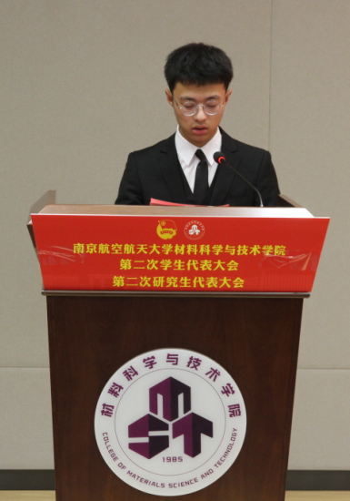 11月26日下午,材料科学与技术学院第二次学生代表大会、第二次研究生代表大会顺利召开。学院党委副书记庄晓舒、团委书记徐萍、校学生会主席团成员王锐韬出席大会开幕式,学院38名本科生代表和30名研究生代表参加大会。