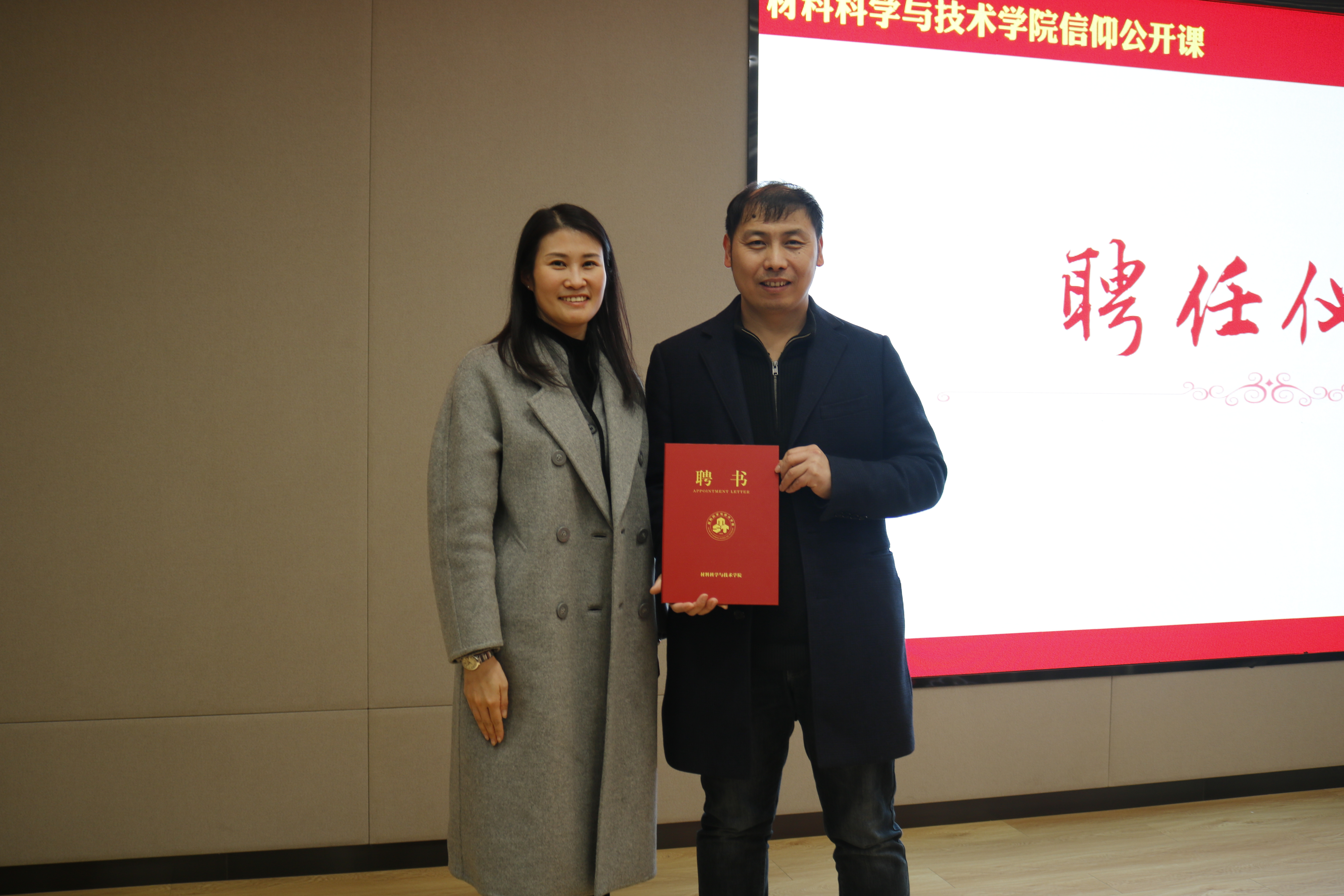 材料学院党委副书记庄晓舒为于连旭老师颁发了“本科生科创企业导师”聘书,希望以此为契机,进一步借助企业优势资源,在本科生科创竞赛、企业实习等方面给予同学们更多的指导和帮助。