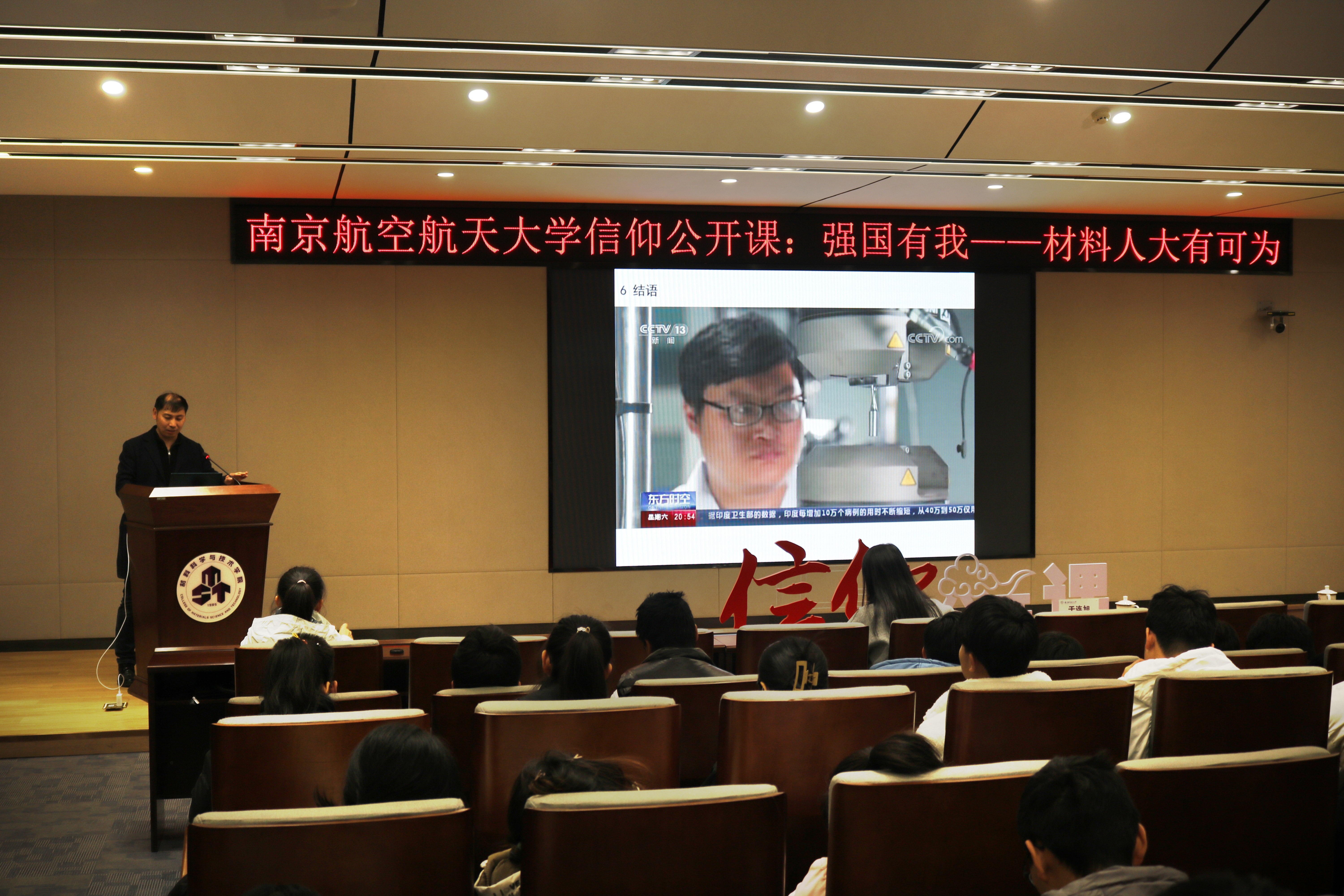 课堂上不时响起钦佩、热烈的掌声,同学们从这堂信仰大课中收获了知识,更坚定了专业自信,正如党的二十大报告中所说“关键核心技术是要不来、买不来、讨不来的”,材料作为制造高端装备的基础,材料人将努力为实现高水平科技自立自强贡献力量。