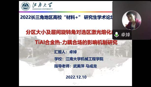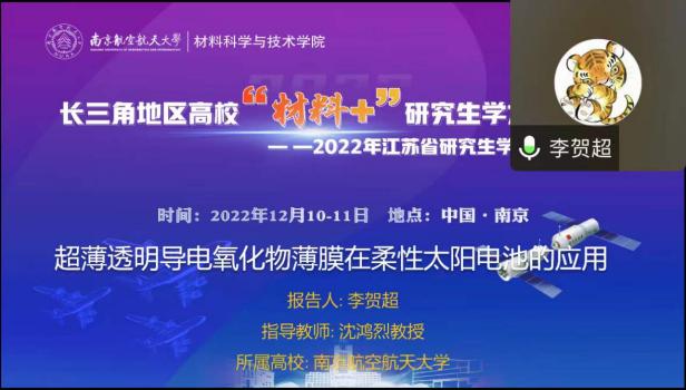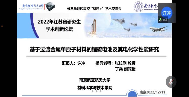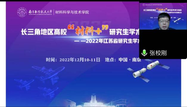 12月10-11日,由江苏省教育厅工学 3 类教指委主办,南航必威BETWAY西汉姆联承办的长三角地区高校“材料+”研究生学术交流会暨2022年江苏省研究生学术创新论坛活动顺利举办。来自北京大学、浙江大学、北京航空航天大学、上海理工大学、东南大学、西北工业大学、南京理工大学、中国科学院等十几所高校的40余名学生通过线上的形式进行学术成果交流与分享,百余名师生聆听报告并参加讨论。