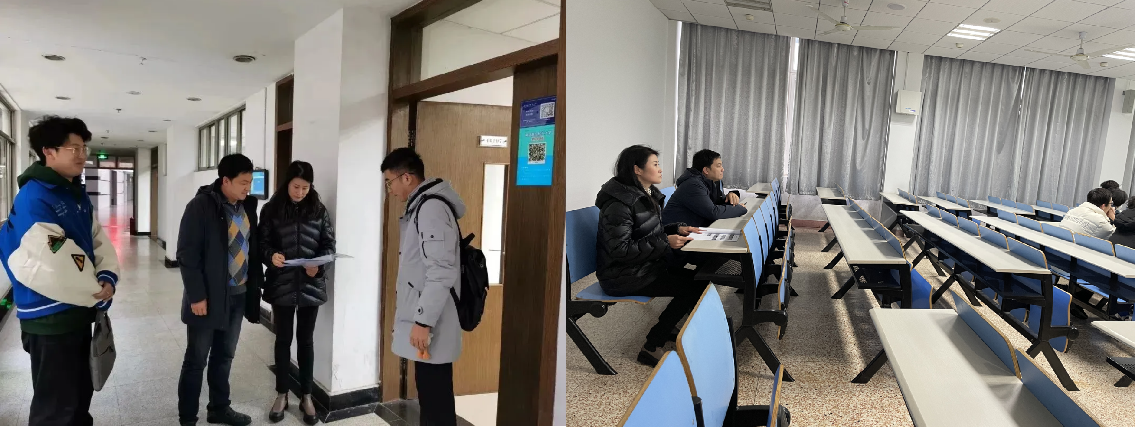 2月13日上午,我院副院长陶海军、党委副书记庄晓舒、全体督导组成员、教学主任、辅导员、教学秘书对第一天本科生课程开课情况进行检查。
