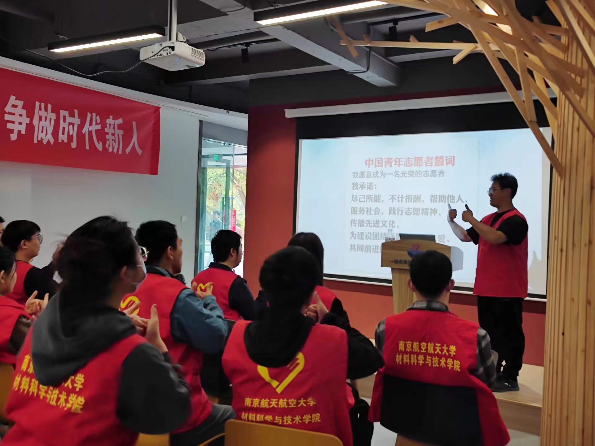 3月12日下午,必威BETWAY西汉姆联青年志愿者协会联合南京人防应急救援志愿大队开展“以手语之名,传无声之爱”手语知识讲座,常州“一加”爱心社南京分社成员王铎锋受邀为志愿者们进行《中国青年志愿者誓词》《义勇军进行曲》手语教学。我院激光增材制造研究生纵向党团支部共21名志愿者参与活动。