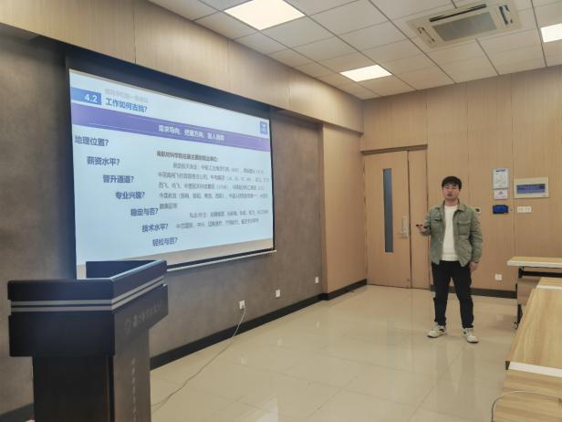 胡凯明回忆了在南航的点点滴滴,对材料学院老师们的辛勤付出致以衷心的感谢;随后介绍了自己所在的上海商飞公司研制的第一架国产大飞机C919,指出增材制造在民航领域有不可忽视的作用。最后,他分享了自己的工作体会,并对学弟学妹们给予就业方面的指导,告诫大家学习期间一定要对自己负责,加强学习主动性。互动环节,同学们就科研、就业、生活等方面积极提问,交流氛围活跃。