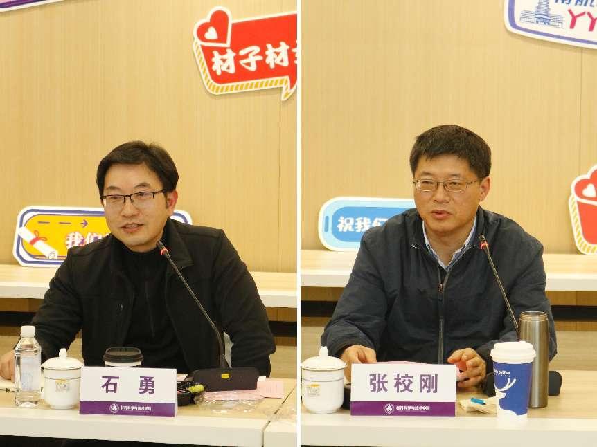 4月4日下午,我院召开“材启征程 料望晴空”2023届毕业研究生代表座谈会。院党委书记石勇、院长张校刚、院党委副书记庄晓舒、副院长汤晓斌、各系相关负责同志、研究生辅导员以及硕博毕业生代表参加座谈。座谈会由汤晓斌主持。