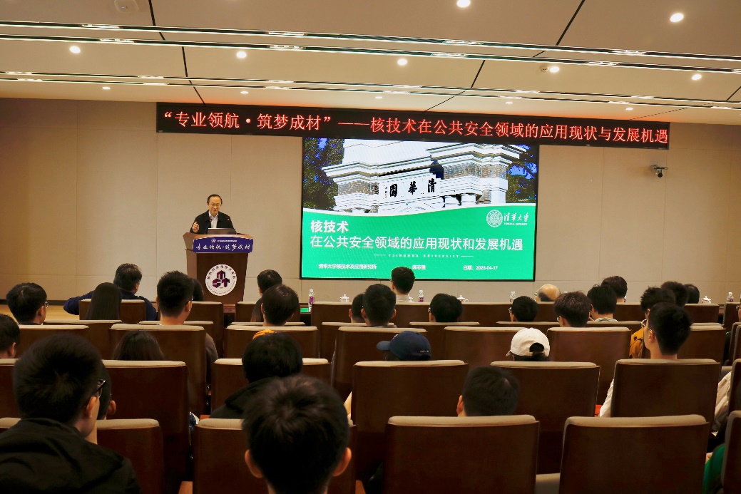 为加强专业认同教育,引导核工程类专业学子认识专业发展前景,开拓专业视野,培养专业求索精神,4月17日,材料学院于东区材料楼501报告厅顺利举办“专业领航 筑梦成材”专题讲座。本次讲座邀请到同方威视公司党委书记/董事长、清华大学工程物理系核技术及应用研究所所长陈志强教授为学院师生讲授了题为《核技术在公共安全领域的应用现状与发展机遇》的精彩报告。院党委书记石勇、院长顾冬冬、党委副书记庄晓舒、副院长汤晓斌、核科学与技术系常务副主任陈飞达及学院120余名师生现场参与本次讲座。讲座由汤晓斌主持。