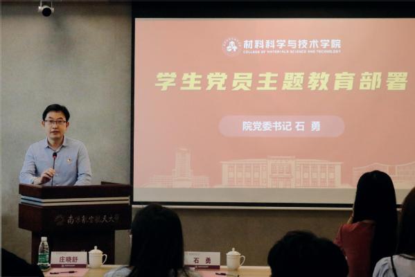 为深入开展学习贯彻习近平新时代中国特色社会主义思想主题教育,提升研究生党建工作能力,5月18日下午,材料学院举行学生党员主题教育部署会暨研究生党员骨干研习营开班仪式。院党委书记石勇,党委副书记庄晓舒,马克思主义学院青年教师徐坤,辅导员代表,近50名研究生党员骨干参加了活动。会议由庄晓舒主持。