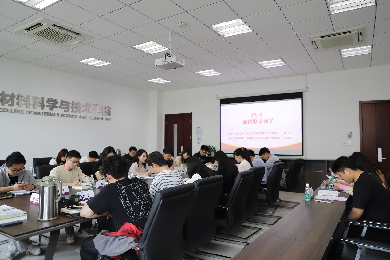 材料学院团委书记徐萍、航天学院辅导员冯果果分别领学《习近平关于社会主义精神文明建设论述摘编》《习近平新时代中国特色社会主义思想专题摘编》部分章节有关内容,并结合辅导员工作实际分享了学习体会,全体参学人员共同读原著、学原文、悟原理,从习近平新时代中国特色社会主义思想中感悟思想伟力、汲取真理力量。