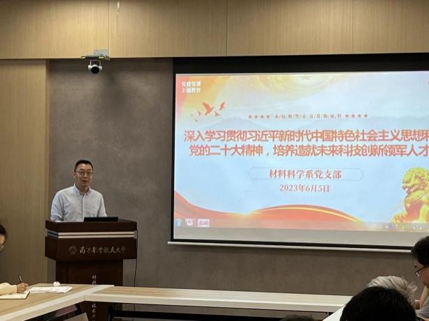 6月5日,材料科学系教工党支部联合研究生M-best电化学储能党支部深入学习贯彻习近平新时代中国特色社会主义思想和党的二十大精神。学习活动还邀请了院机关党支部党员代表参加,会议由支部书记刘劲松主持。