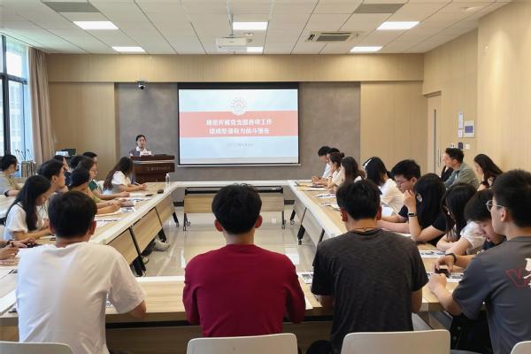 为深入学习贯彻习近平新时代中国特色社会主义思想主题教育,进一步夯实党务工作基础,提升党员骨干的“硬实力”,6月8日,我院研究生党员骨干研习营第三讲基层党务工作培训精彩开讲。本次培训由院党委副书记庄晓舒主持,校党委组织部正科级组织员谢姝婕主讲,辅导员代表、研习营全体学员参加了此次培训。