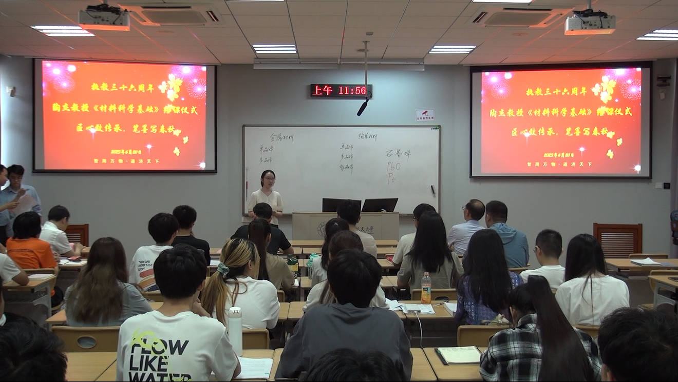 为致敬材料学院陶杰教授从教36周年,任教《材料科学基础》课程20周年,传递弘扬陶杰教授笃志教学的育人精神,“最后一课”活动上,材料加工工程系党支部、柔性成形技术与装备团队研究生纵向党支部,在本学期《材料科学基础》课程的最后一课组织举办了陶杰教授从教36周年结课仪式活动。
