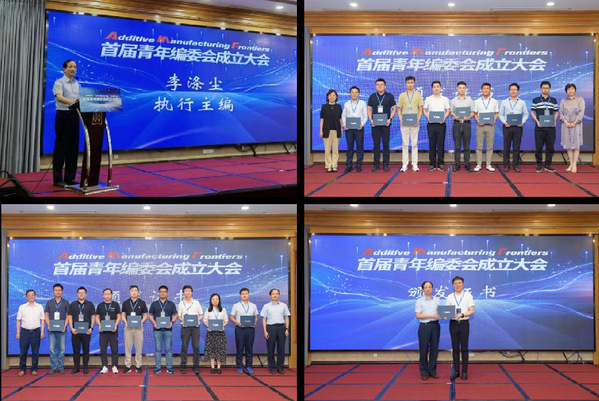 大会举行了AMF首届青年编委会成立仪式,AMF执行主编李涤尘宣读了“关于聘任《增材制造前沿(英文)》首届青年编委会的批复”,AMF副主编、我校顾冬冬教授担任首届青年编委会主任委员。随后与会领导向全体到会青年编委颁发了AMF首届青年编委会委员聘书。李涤尘在总结讲话中表示,吸纳青年学者成立青年编委会,是充分发挥青年学者的学术专长、激发编委会工作活力、扩大期刊影响力、实现学报品牌升级的重要举措,希望各位青年编委同心协力,推动期刊不断向前发展,为我国增材制造领域的发展贡献力量。
