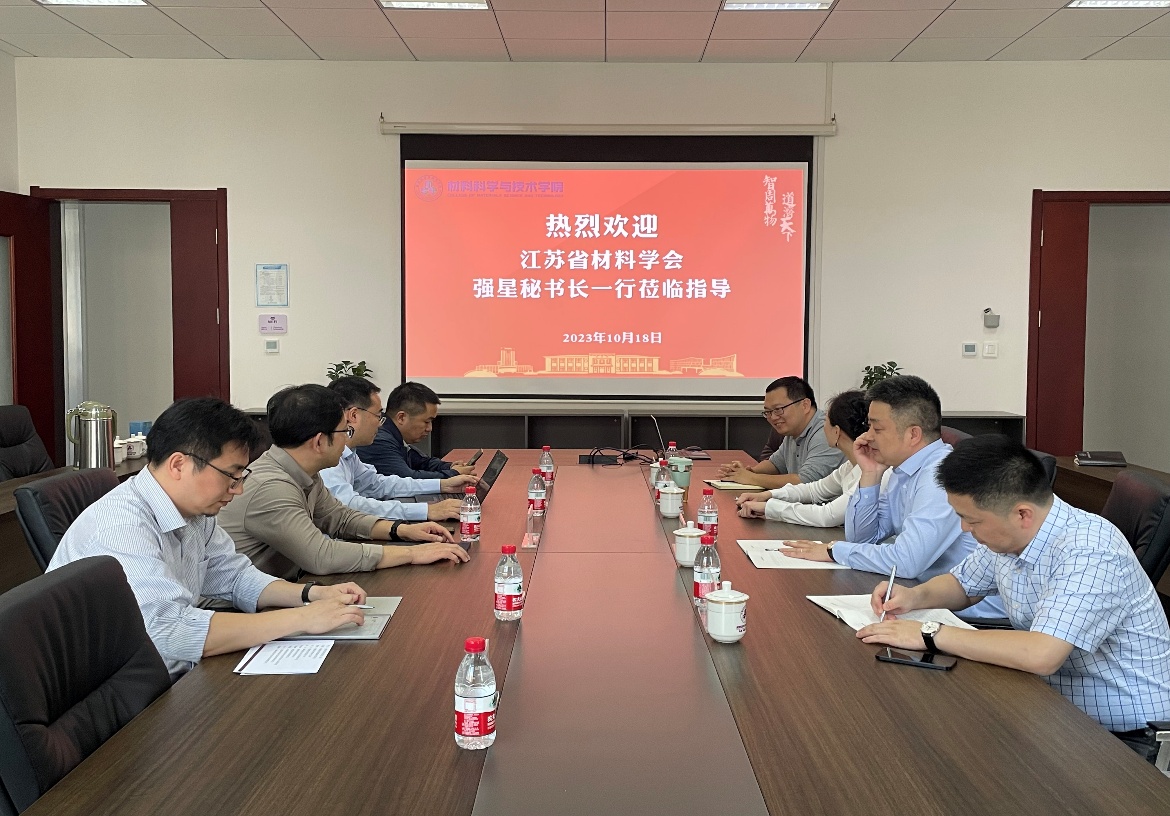 10月18日下午,江苏省材料学会秘书长强星一行来我院考察调研。学院党委书记石勇、副院长郭训忠、专务刘周成、材料加工工程系副主任周金堂及科研办相关人员参加了调研座谈会。