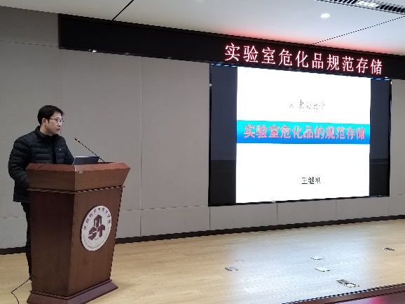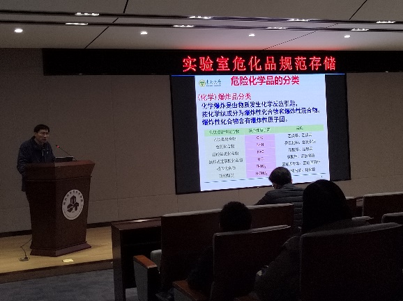 12月13日下午,我院特别邀请到东南大学实验室与设备管理处王继刚副处长就实验室危化品的规范存储和使用进行专题讲座。本次讲座由学院党委书记石勇主持,全院100余名师生参加了此次培训活动。