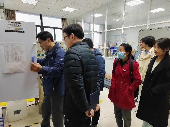 会后,学院组织与会人员现场参观了JD10-B504实验室。王继刚副处长对实验室危化品的存储情况,进行详细的现场指导。